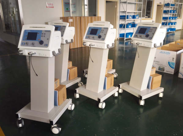Look, our engineers are preparing to test and debug these trolley-type emergency ventilators.