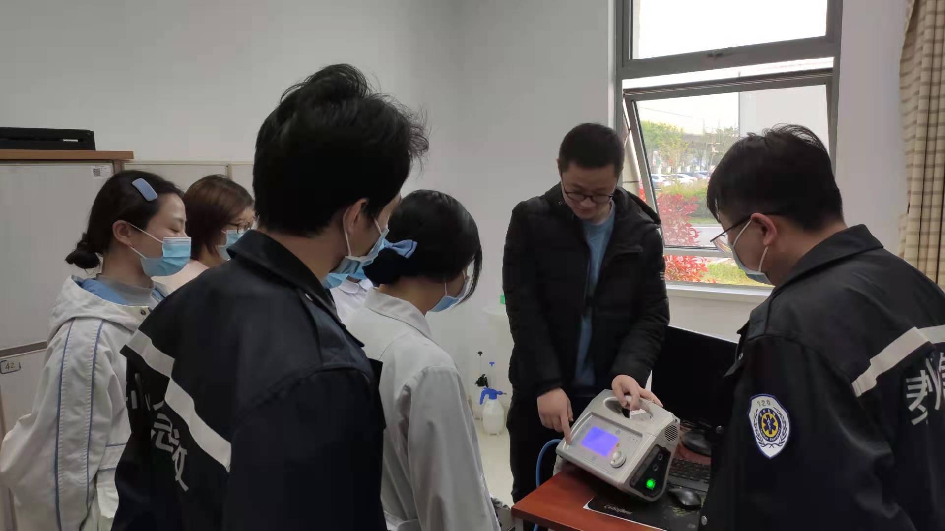 Look! Our engineer is explaining how to use the emergency ventilator JOGGER on site!