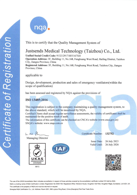JIUJIUXIN Emergency Ventilator has undergone a series of audits and inspections,