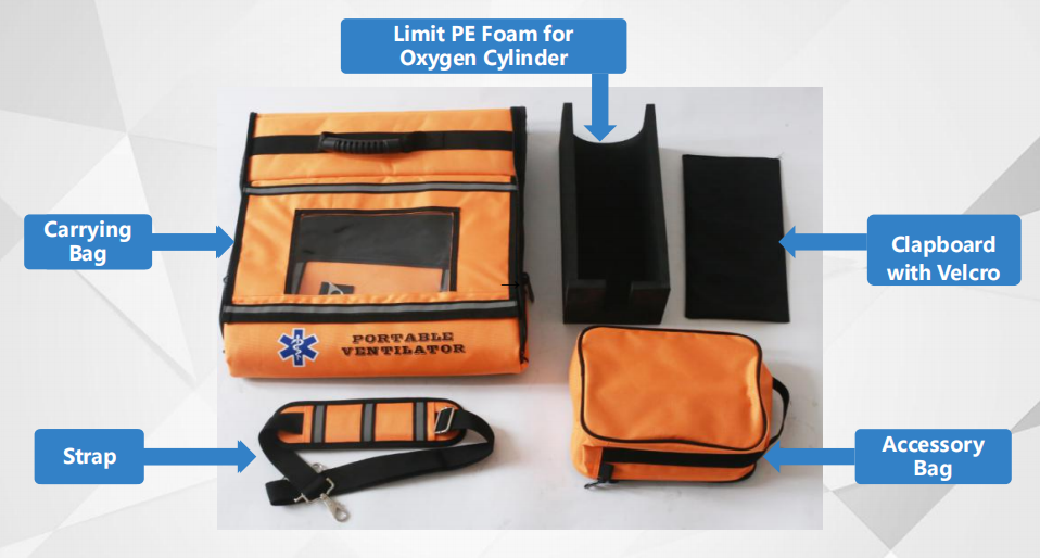 Our carrying bag of emergency ventilator can hold both the emergency ventilator and the necessary accessories,